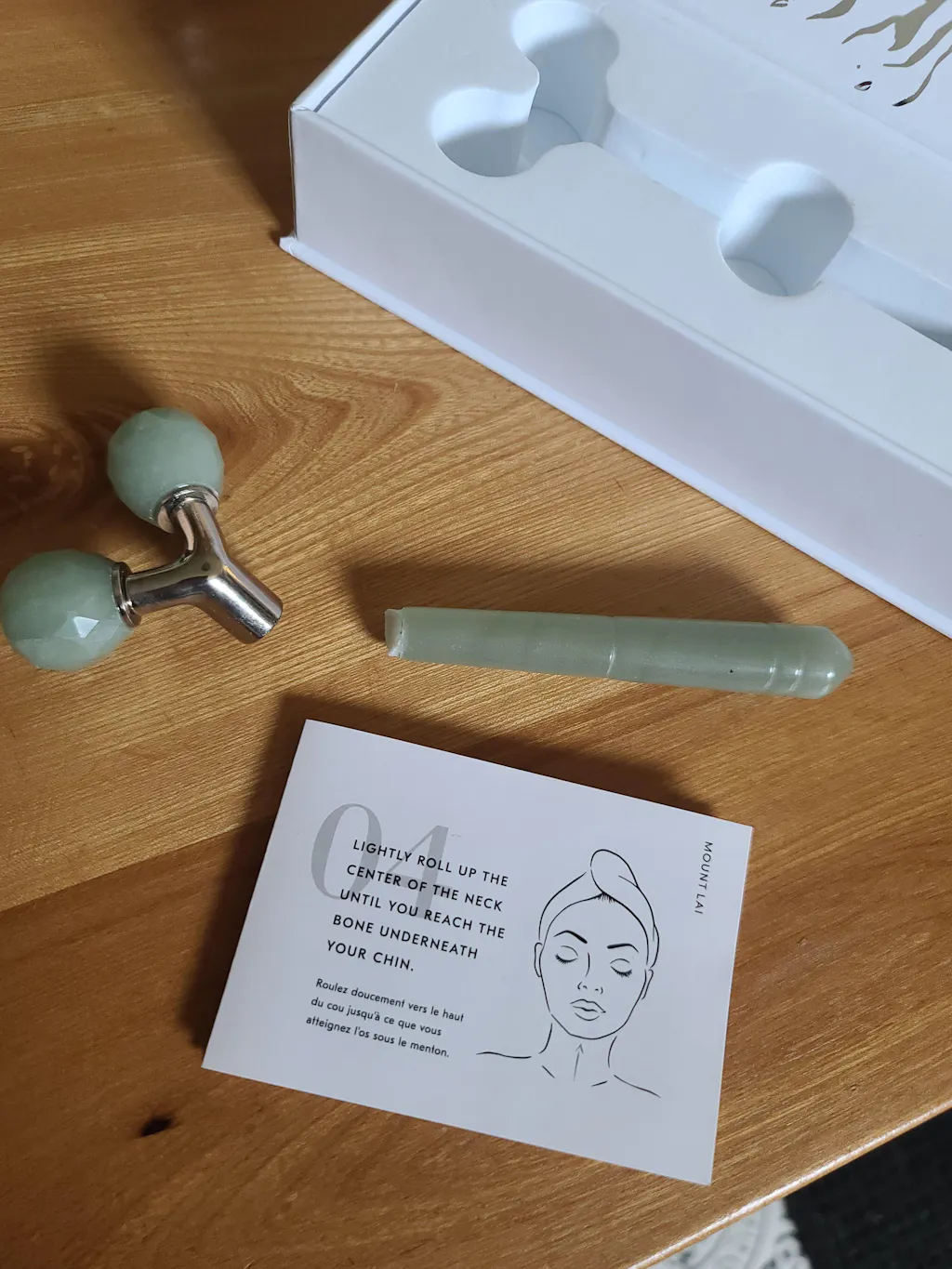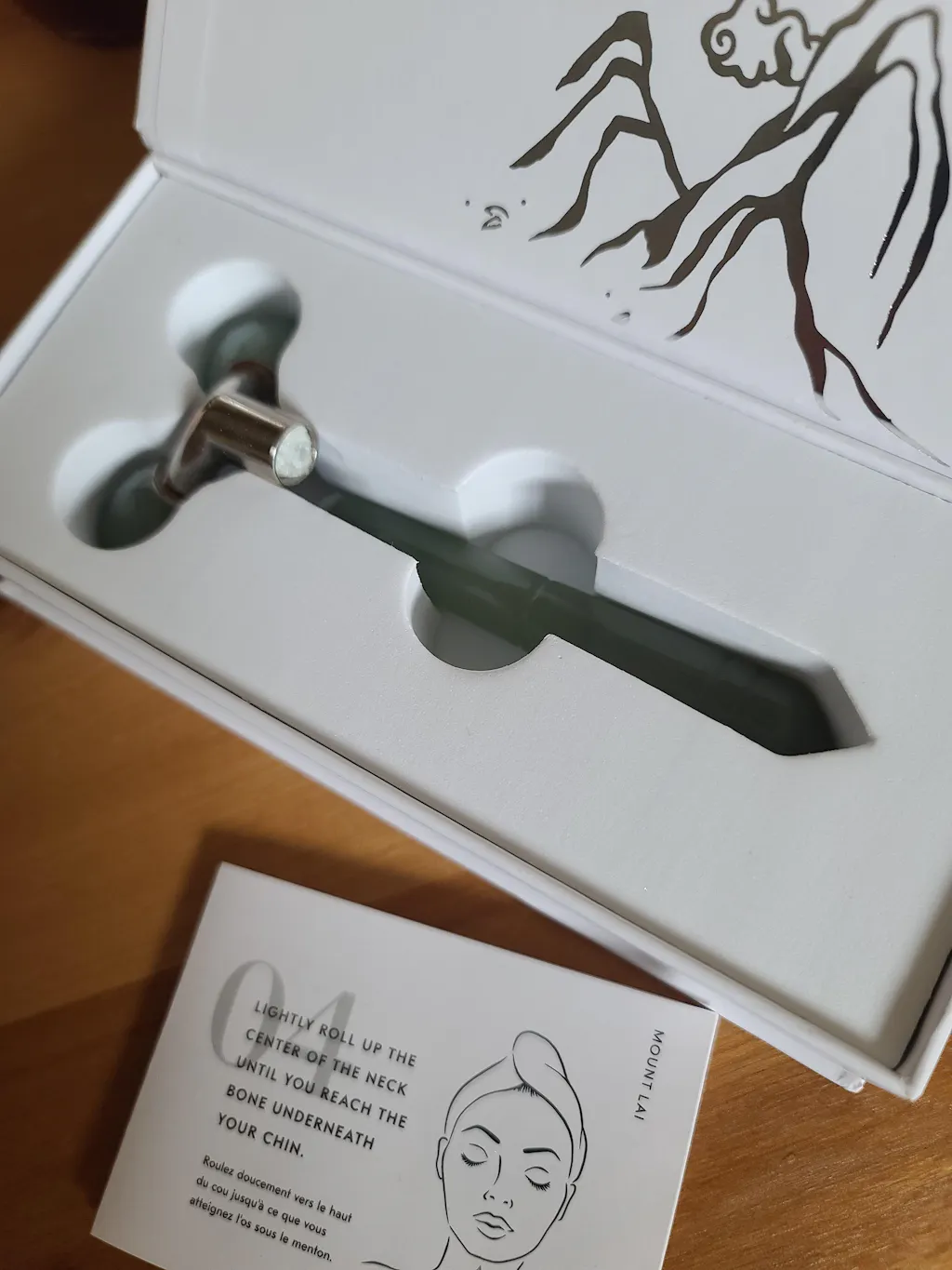 Our Mount Lai box is the perfect compartment for your tools to be housed in. After washing your tools, please make sure your tools are completely dry before placing them in their storage container! For an added cooling effect, our facial tools like jade rollers and de-puffing eye tools can also be kept in the refrigerator.